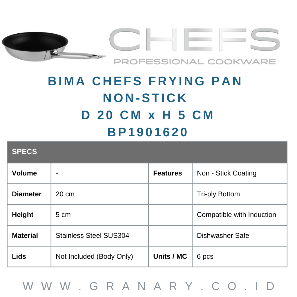 Bima Chefs Frying Pan Non-Stick Teflon Platinum 20cm, SUS 304