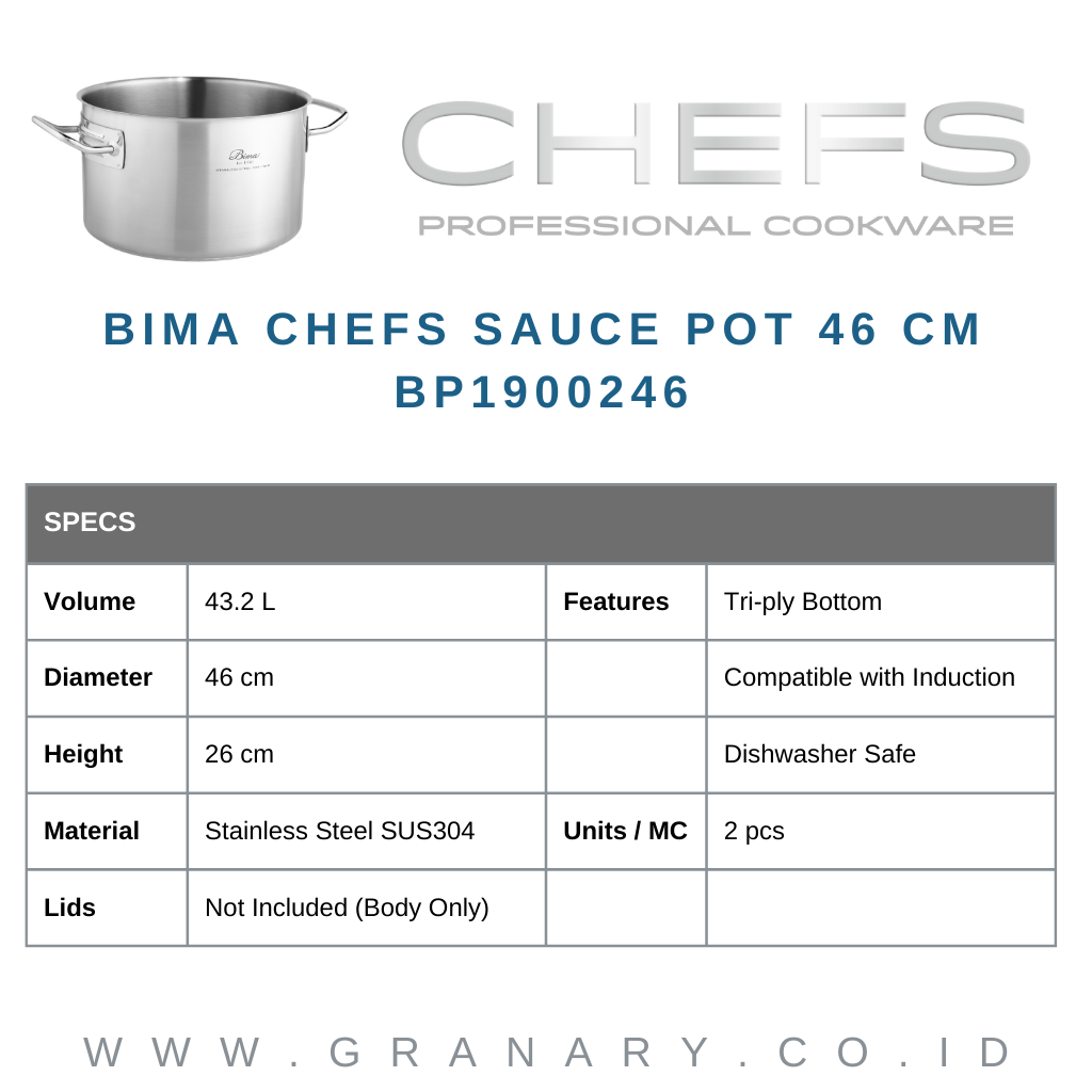 Bima Chefs Sauce Pot D46cm x H26cm, 43.2L, SUS 304 (Body Only)