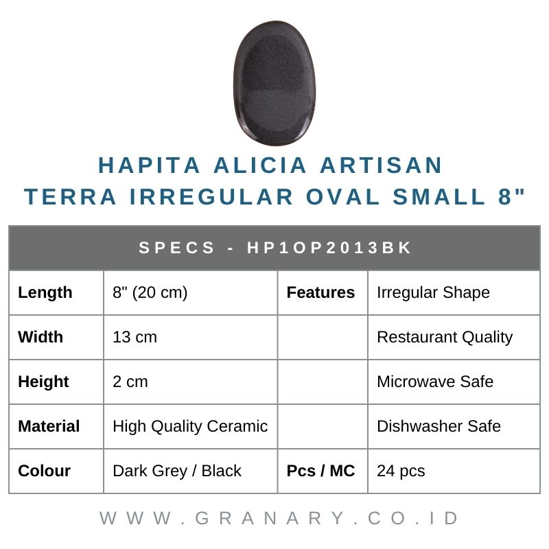 H050403 Hapita ALICIA Artisan Black TERRA IRREGULAR OVAL Platter SMALL 7.5″, 20 x 13 cm, H 2 cm, 1 PC, FSF787, K1J125, [MC24/9.2/0.015]