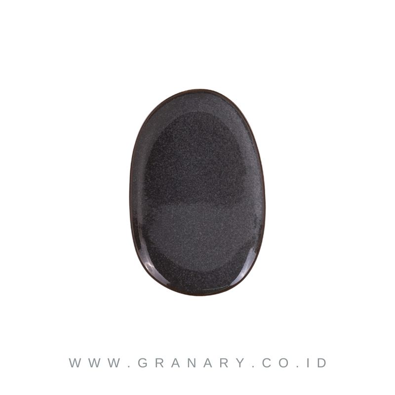 H050403 Hapita ALICIA Artisan Black TERRA IRREGULAR OVAL Platter SMALL 7.5″, 20 x 13 cm, H 2 cm, 1 PC, FSF787, K1J125,