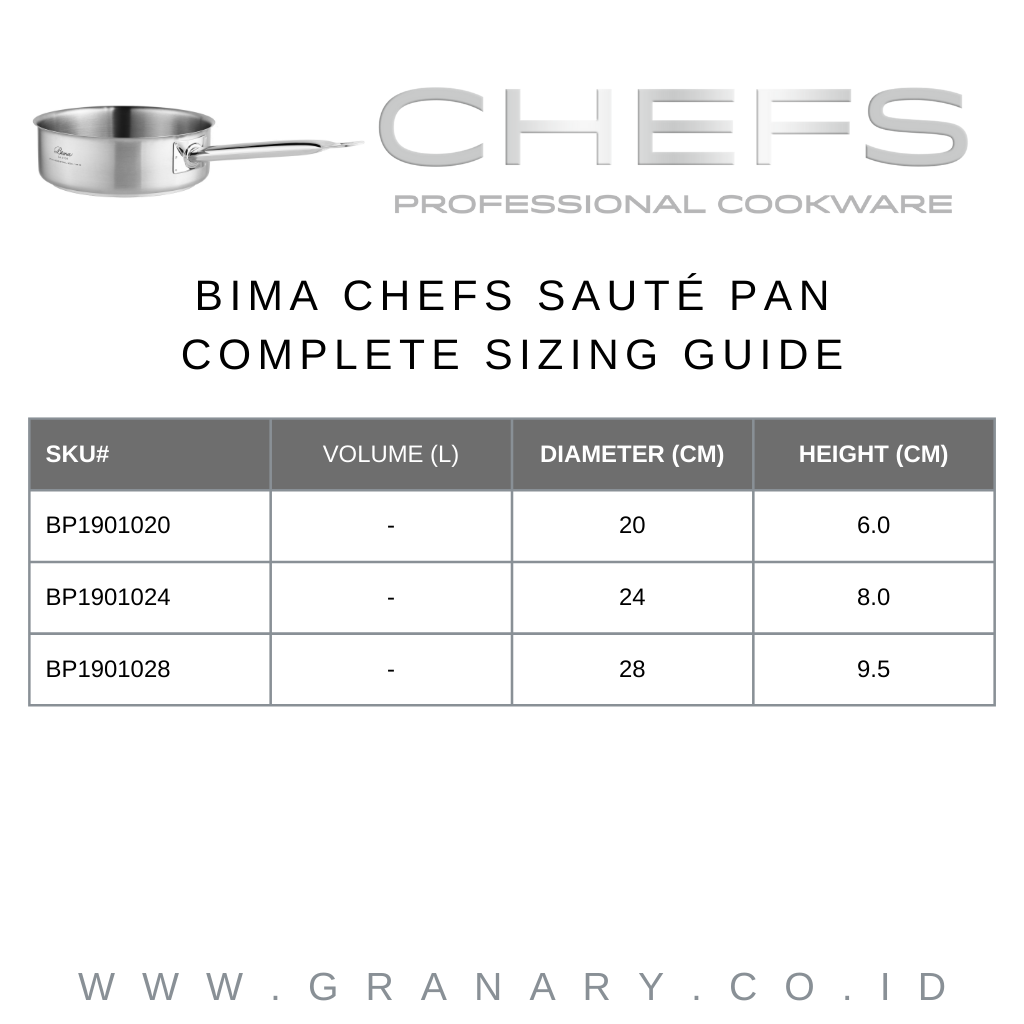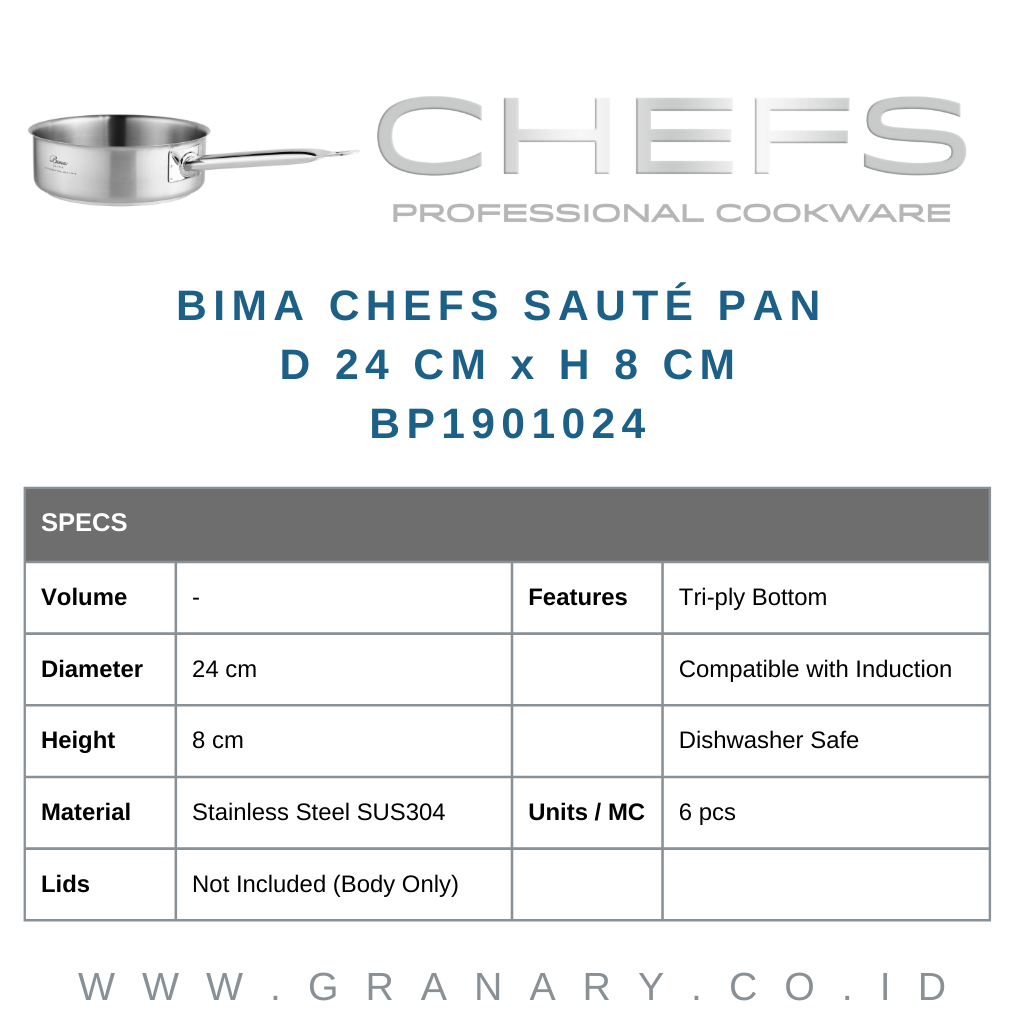 Bima Chefs Sauté Pan D24cm x H8cm, SUS 304 (Body Only)