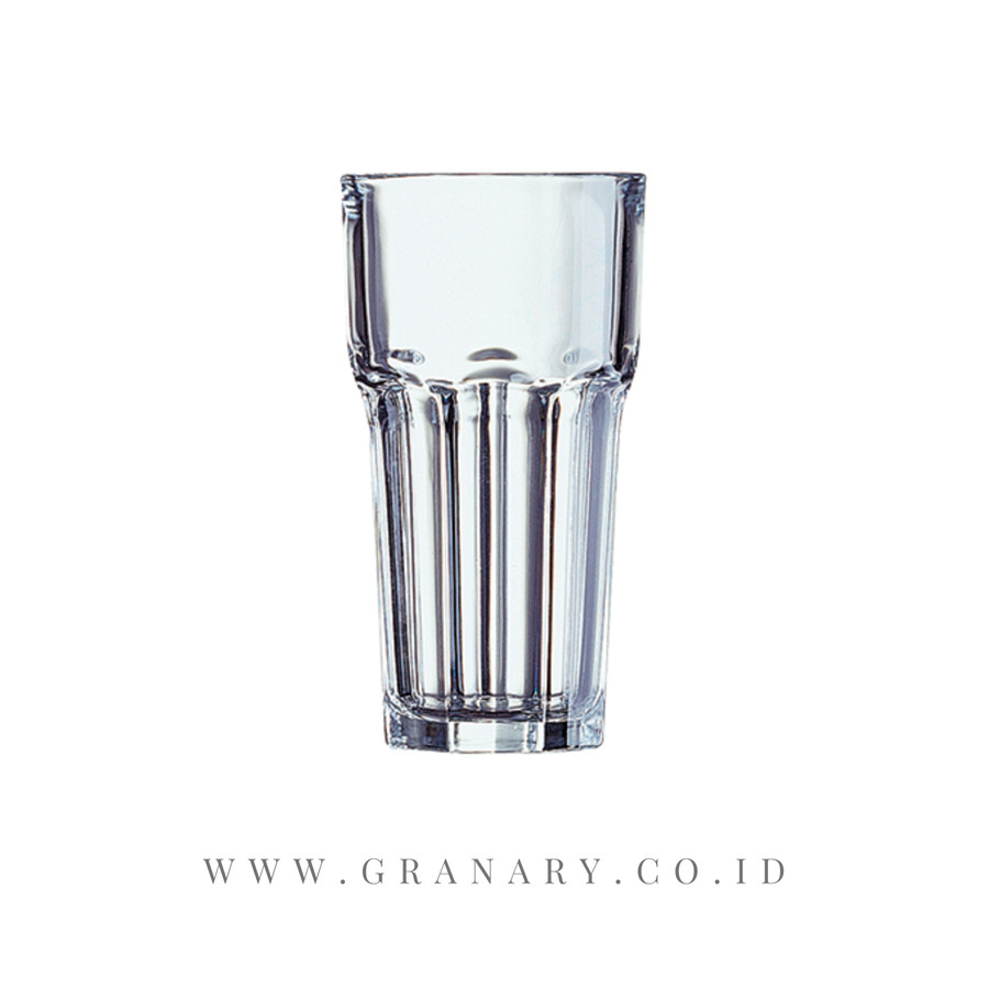 G3655 ARC GRANITY H/B 360 ml, V 36 cl, 12 oz, D 78mm, H 147mm, W 370g Set of 6 pcs, Extra Resistant Fully Tempered Glass, Glass Safety The Granity collection takes pride of place on tables around the world: in bars, hotels and lounges, on terraces and buffets. Professionals love its vintage look, its range of sizes and the exceptional solidity of tempered glass. The extensive range is dedicated to all soft drinks, water, sodas, fruit juices, as well as beers in the 65, 46, 42 and 35 cl glasses and spirits in the 4.5 cl format. The generous capacities are made for the large ice cubes that are all the rage in mixology. They add to the impact of your spectacular cocktails. The characteristic design of faceted glass makes them very easy to hold. For more information, please visit www.granary.co.id 0